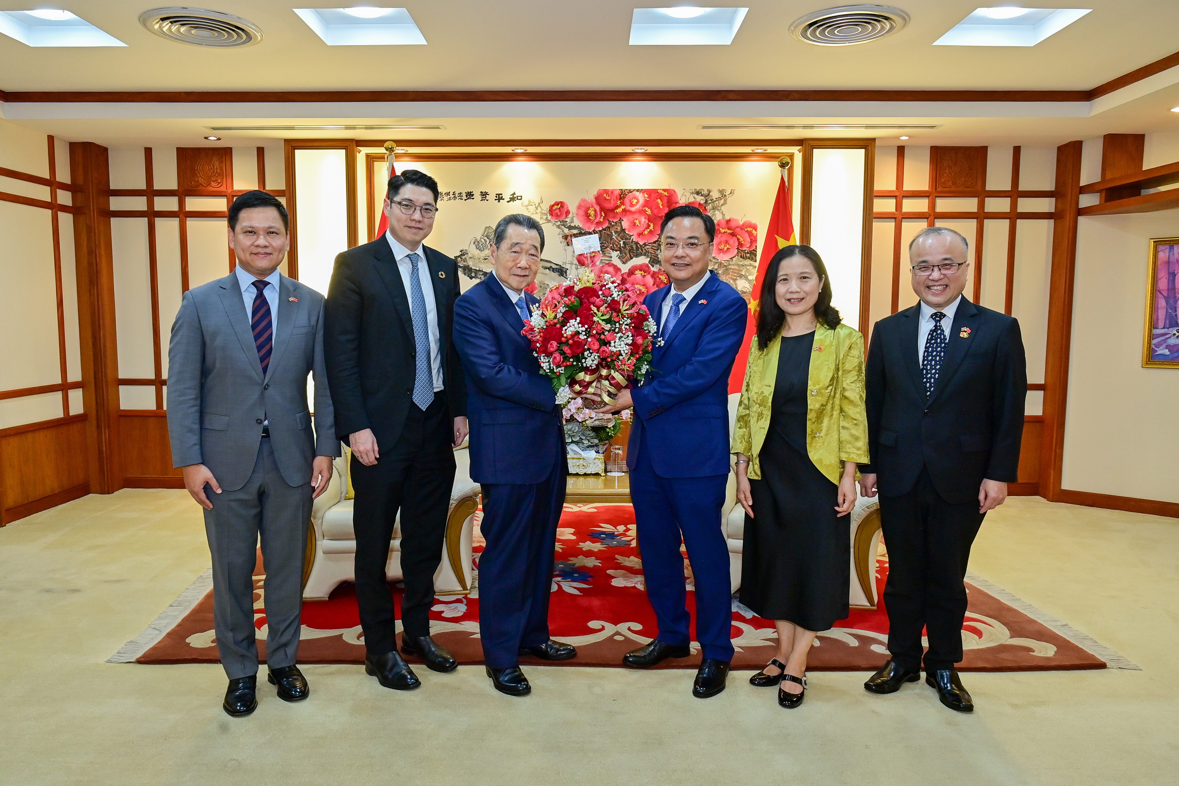 ▲張建衛大使(右)會見謝國民集團資深董事長。