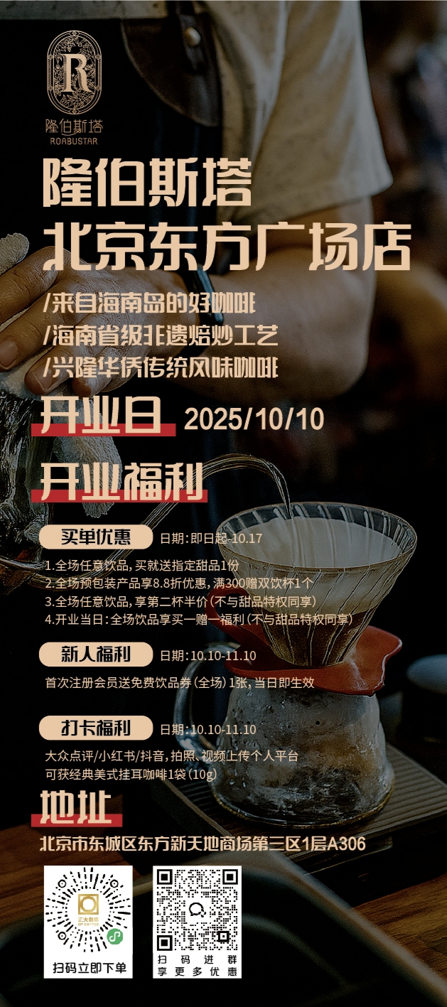 隆伯斯塔北京東方廣場店不僅是一家咖啡館,更是連接京瓊兩地的文化橋梁。從萬寧的興隆咖啡文化園到北京的核心商圈,這杯承載著歸僑奮斗精神與七十年傳承的咖啡,正以其獨特的醇香魅力,邀請首都消費者一同感受海南僑鄉興隆的深厚文化。